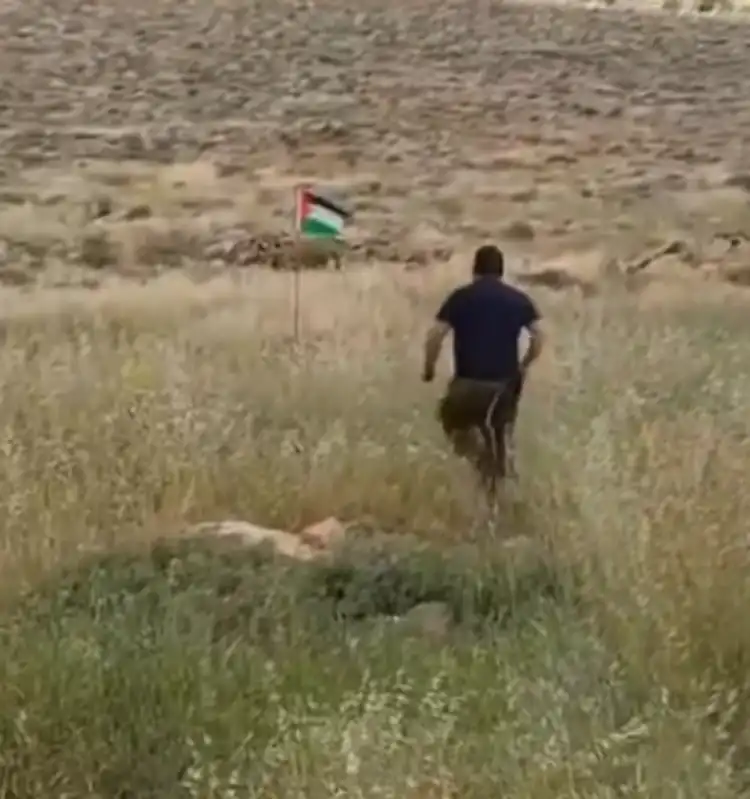 Aracıyla seyahat eden bir İsrailli, yol kenarında bir İsrail bayrağının dalgalandığını görünce dayanamadı, aracını durdurdu, yanındakilerin “boşver”lerine aldırmadı ve bayrağa doğru koşar adım gitti.