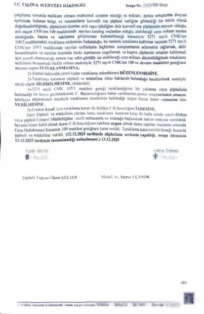 Evet sonunda Tuğyan Ülkem Gülter tutuklandı.