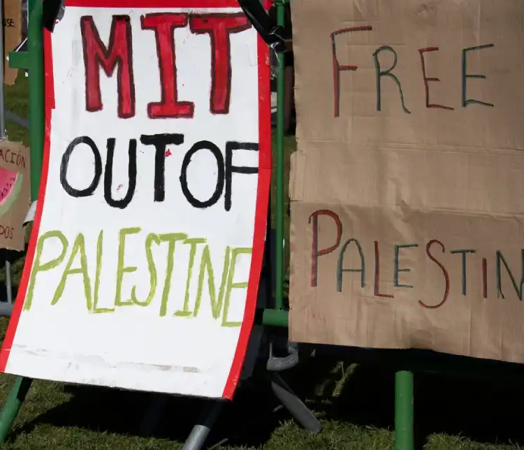 Sanılanın aksine burada kastedilen MİT, dünyanın en prestijli üniversitelerinden Massachusetts Institute of Technolog (MIT) Aktivistlere göre üniversite yönetimi İsrail yanlısı bir tutum içinde ve bu nedenle “MIT, out of Palestine” (MIT Filistin’den elini çek) sloganı kullanılıyor.
