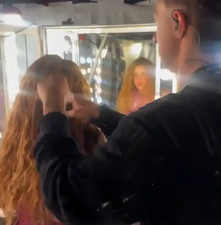 Ünlü Latin hanende Shakira, bir performans için kuliste kuaför önündeydi.